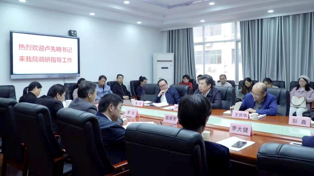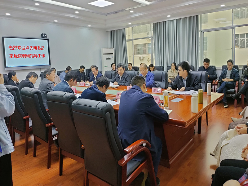 经理高其荣向调研组一行汇报了近年来公司团队队伍建设、教学科研工作等方面的情况,同时也客观分析了公司在思政课教学、团队建设、学位点建设方面存在的问题,并就省委巡视组巡视中指出的相关问题提出了整改思路和举措。