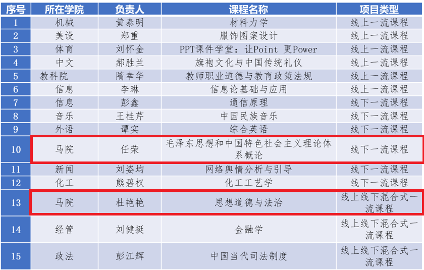 近日,湖南省教育厅发布2021年度省级一流本科课程认定结果,公司有两门课程入选省级一流本科课程。任荣副教授的《毛泽东思想和中国特色社会主义理论体系概论》被认定为线下一流课程,杜艳艳副教授的《思想道德与法治》被认定为线上线下混合式一流课程。