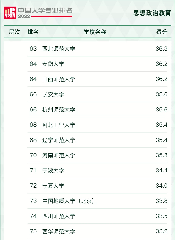 近日,高等教育专业评价机构软科今日正式发布2022“软科中国大学专业排名”,公司思想政治教育专业在全国高校中排名第103位。