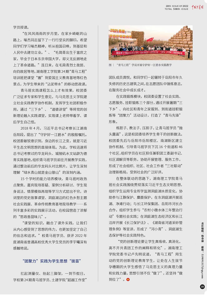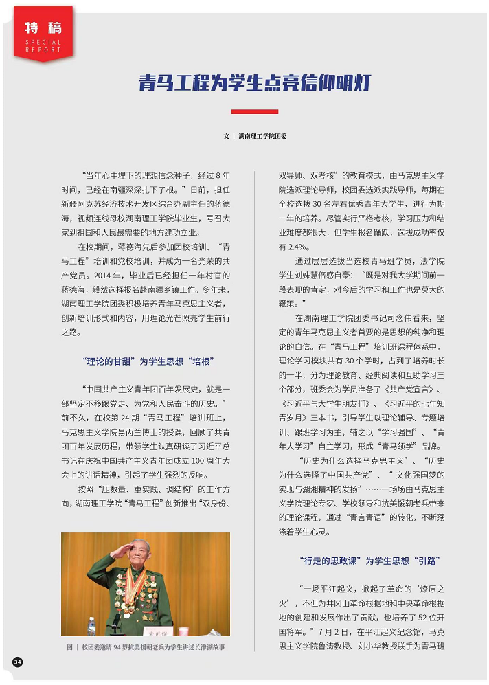 2022年第18期《中国共青团》杂志以《青马工程为员工点亮信仰明灯》为题,以特稿形式推介公司参与“青马工程”培养工作情况。
