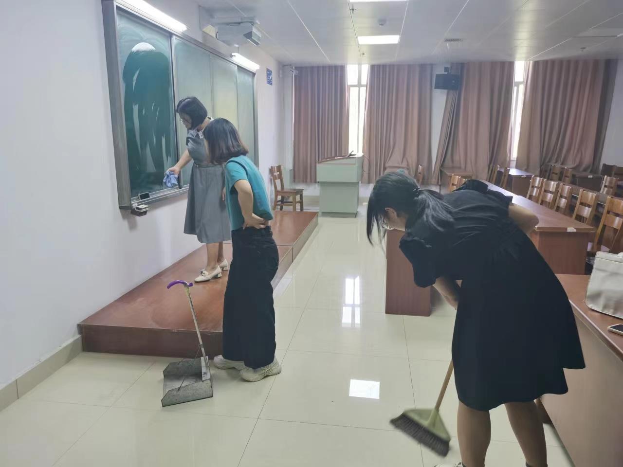 在9栋教学楼前,公司党委书记黄剑、副书记付亚子为同学们作动员,号召大家积极投身“美丽校园建设”,自觉接受劳动教育,在劳动实践中锻造自己,努力成为德智体美劳全面发展的社会主义建设者和接班人;同时也强调了工作要求和安全工作。在劳动过程中,大家不怕脏不怕累,仔细清扫地面垃圾、清理墙面污垢、擦拭玻璃、冲洗厕所。在12栋教学楼,公司领导、老师和同学们一道清扫办公区域和公共区域。虽然气温高达30℃,天气炎热,但师生们都积极参与,团结协作,发挥主人翁精神,为“美丽校园建设”贡献着自己的力量,为省第十二届大运会的成功举办营造美好的校园环境。