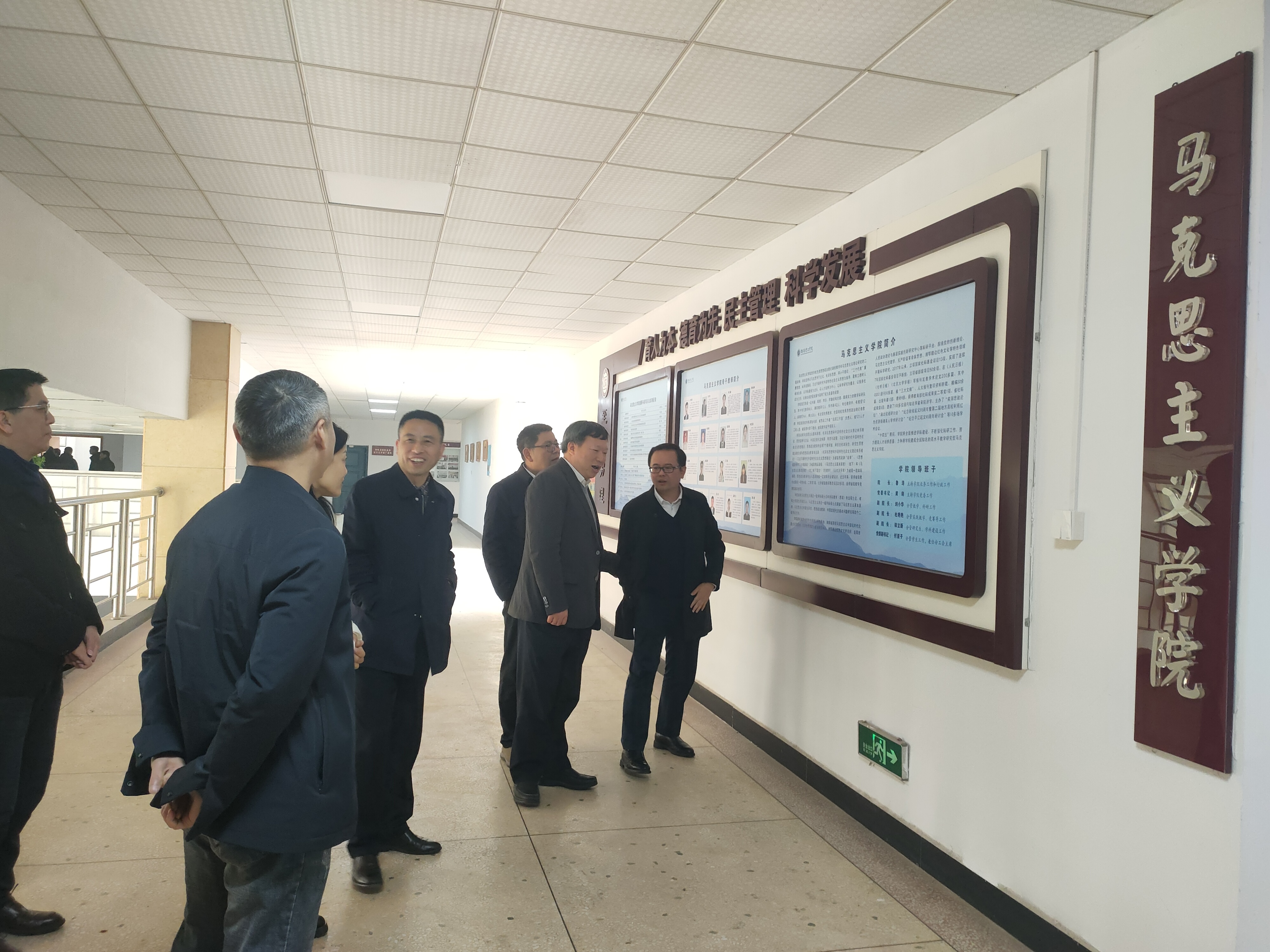 曾祥君董事长一行来到南院9号楼三楼公司的办公场所,边走边看,并听取经理鲁涛和党委书记黄剑的相关情况汇报。当了解到思政课教师缺额比较多时,他表示,要加大力度引进高质量人才,充实教师队伍,积极争取按1:350的要求来配备思政课教师。看到公司宣传栏上列出的近几年教学科研成绩,他希望能继续保持良好态势,加快发展,把公司建好建强,成为名副其实的重点beats365。得知公司“求索论坛”正在举办《国家社科基金项目申报方法与体悟》专题讲座,曾董事长兴致勃勃走进会场,亲切地和主讲嘉宾——武汉工程大学beats365经理曹胜亮教授握手,感谢专家来公司传经送宝,并勉励青年博士教师和硕士研究生努力提升科研能力。他对公司班子提出要加强自身建设,注重培养年轻干部,保持良好的政治生态。