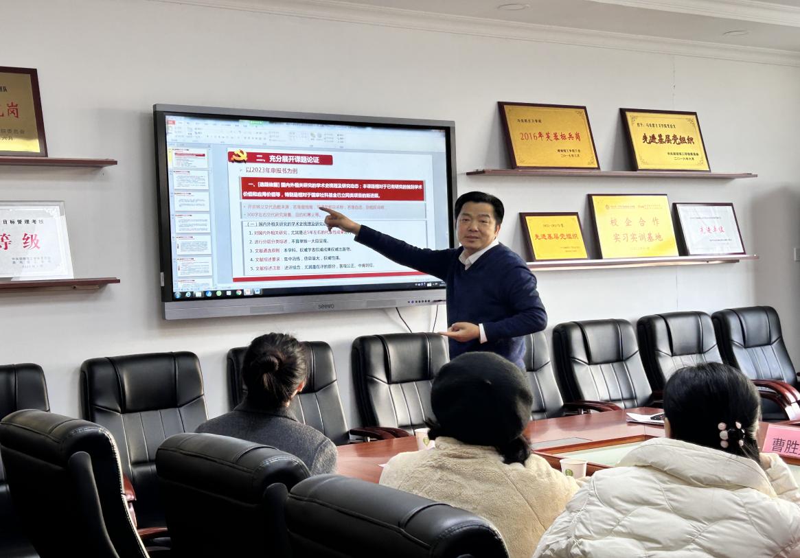 曹胜亮教授以“国家社科基金项目申报的方法与体悟”为主题,结合自身申报国家社科基金项目的历程和感悟,从研究主题、课题论证、研究基础、研究经费、文本完善和保持良好心态六个方面论述了如何进行国家社科基金项目申报工作。他认为国家社科基金项目是一项非常艰辛的工作,必须全心全意投入,把握好每一个细节,结合自己的研究基础,科学选题、合理论证,认真写好项目申报书。他结合诸多成功的范例,仔细讲解了如何写作项目申报书,特别是如何写学术史和研究动态、框架思路和创新之处,对公司今年拟申报国家社科基金项目的教师很有启发意义。