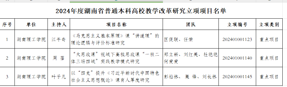 近日,湖南省教育厅发布《关于2024年度湖南省普通高等公司教学改革研究项目立项的通知》,公司江午奇、周蓓、叶子凡三位青年博士获批重点项目,创公司历史最好成绩。