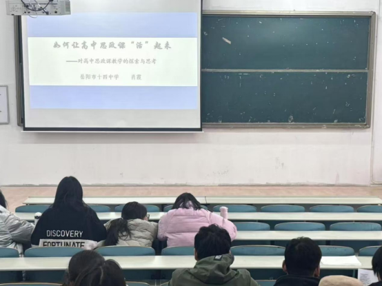 12月24日下午,岳阳市第十四中学优秀思政课教师肖霞应邀来公司担任第四期“思政师范讲坛”主讲嘉宾,主讲“怎样让高中思政课堂‘活’起来——对高中思政课教学的探索与思考”。公司23级员工及部分教师代表参加。讲座由副经理杜艳艳主持。