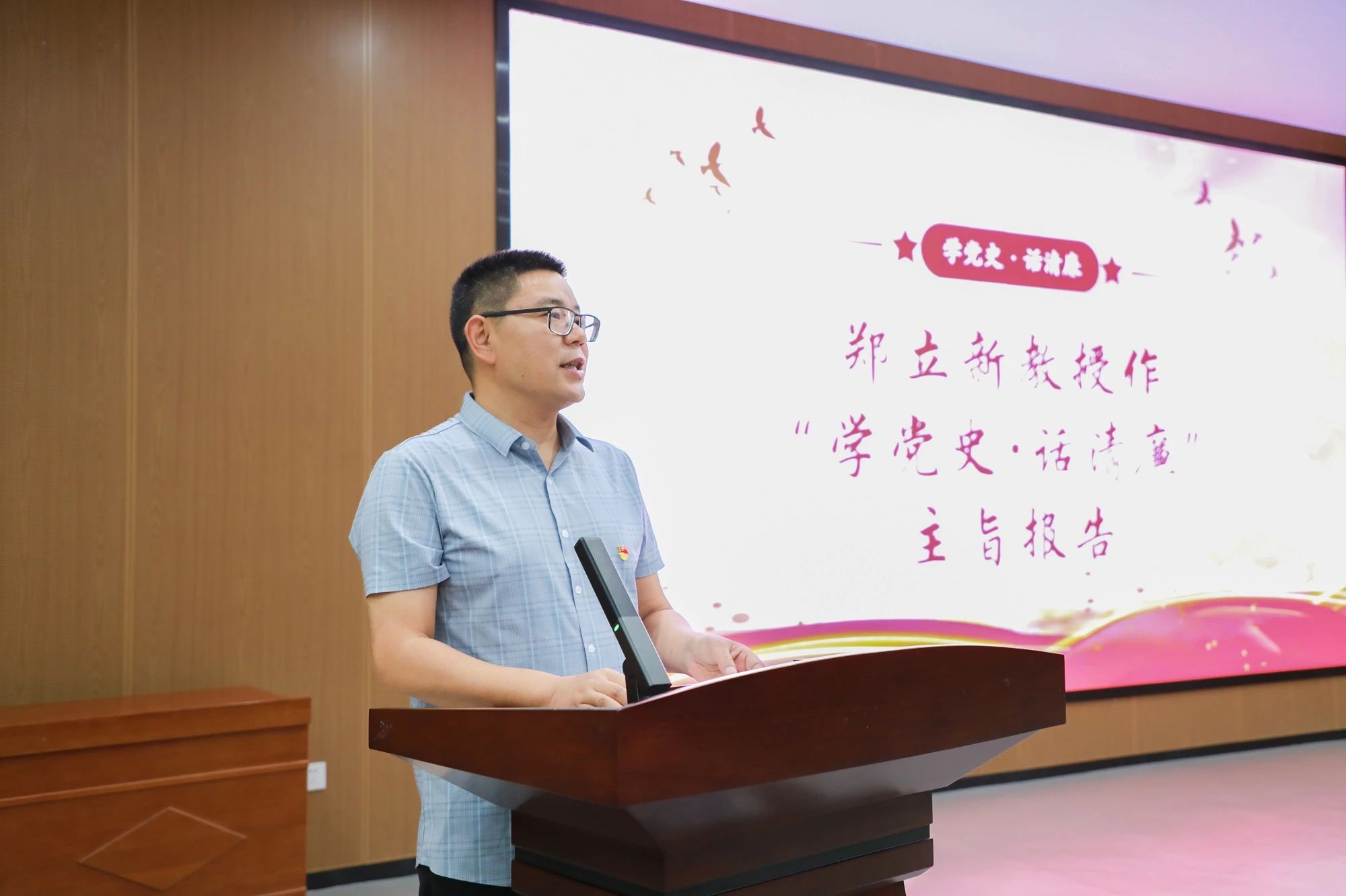 活动伊始,公司副经理郑立新作“学党史·话清廉”主旨报告,以深厚的理论功底和生动的党史案例,深刻阐述了中国共产党人的使命担当与廉政精神。他表示,站在新时代的历史节点回望党的百年征程,内心汹涌澎湃,深切感受到红色基因中蕴含的信仰力量与廉洁底色。