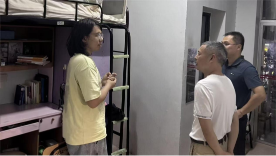 夜幕降临,华灯初上,院领导带领辅导员深入员工寝室,亲切看望返校学子。“假期过得怎么样?”“新学期的课程有没有困难?”“生活上还有什么需要?”领导和老师们与同学们促膝谈心,细致了解大家的思想动态、学业规划和生活状况,耐心解答疑问,叮嘱同学们要尽快调整状态,合理安排时间,以健康积极的身心面貌投入新学期的学习生活中。