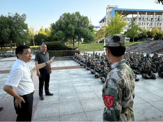 9月16日下午,公司党委委员、副董事长、军训师政委徐振祥率队走访公司新生军训场地,亲切看望训练中的2025级新同学,慰问军训教官和值班老师、员工干部。公司党委学工部部长刘立刚、副部长吕强参加走访慰问。