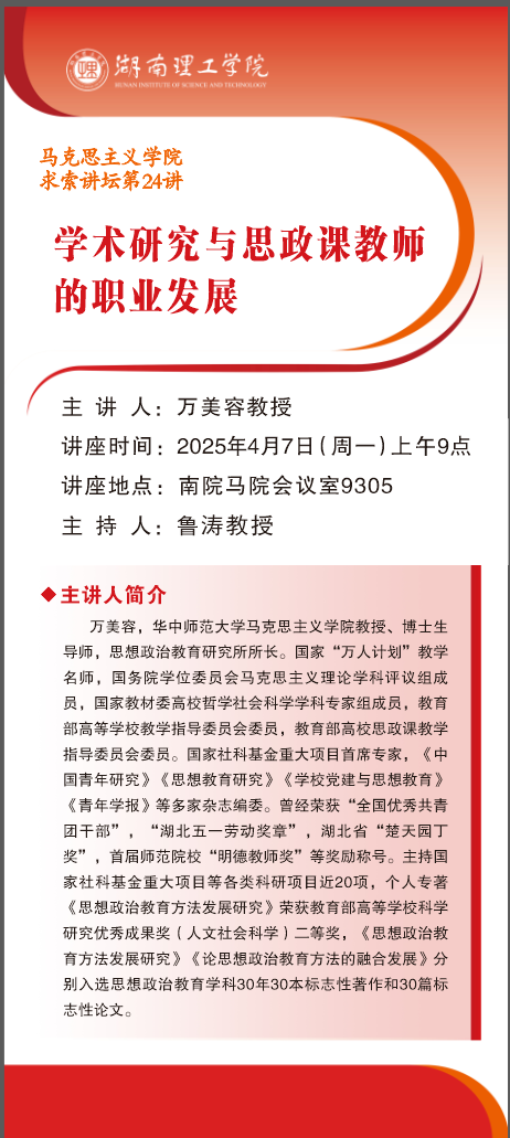 求索讲坛第24讲:学术研究与思政课教师的职业发展