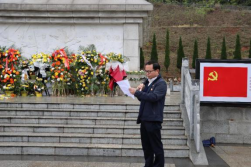 陈超文在革命烈士纪念碑前发表讲话。他表示,革命先烈们的英雄事迹、革命精神和光辉业绩永远值得我们缅怀和尊敬,他们对中华民族伟大复兴的坚定执着追求,并因此而舍生忘死的英勇献身行为,始终是激励我们奋勇前进的强大精神动力。我们祭奠英雄,就是要继承先烈遗志,弘扬先烈精神,传承先烈伟业。当代青年生逢盛世当不负盛世,生逢其时当奋斗其时,坚定理想信念,脚踏实地的做好每一件平凡的事,励志做一个有理想、敢担当、能吃苦、肯奋斗的新时代有为青年!