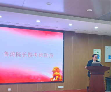 鲁涛鼓励同学们积极报考研究生,他结合往届同学考研情况与当下考研形势提出四点建议,一是定位要准,利用好自身优势,看清形势;二是准备要早,提早规划,明确目标;三是复习要实,脚踏实地,一份耕耘一份收获;四是身体要棒,合理安排时间,保持身体与心态健康。他根据自己的考研经历,鼓励同学们一鼓作气,持之以恒。