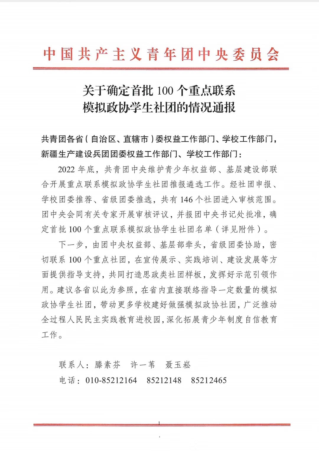 近日,共青团中央发布《关于确定首批100个重点联系模拟政协员工社团的情况通报》,确定全国首批100个重点联系模拟政协员工社团名单。公司“员工模拟政协协会”成功入选。