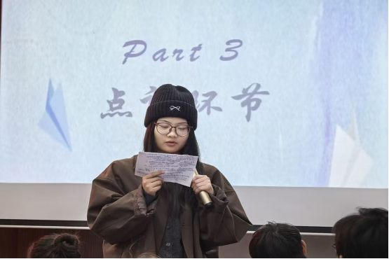 在点评环节,吴文敏、刘先媛、罗紫怡三位评委依次对选手们的表现进行了精彩点评。她们对每位参赛选手的努力表示肯定,并对不足之处提出建议,鼓励大家积极展示自己。她们指出,要在实践中明确前进的方向,同学们需珍惜当下,在学习工作中总结经验,实现自我的成长与蜕变。