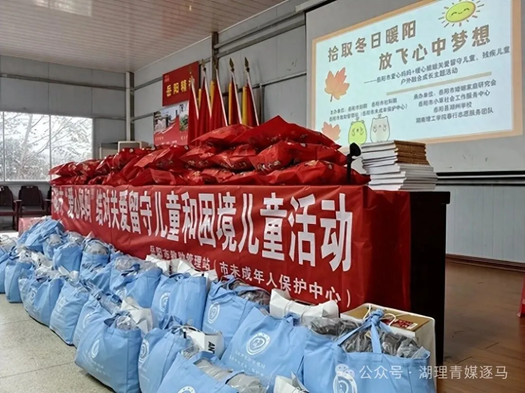 活动伊始,岳阳市救助管理站(市未成年人保护中心)为孩子们送上过冬暖服、鞋子、文具及零食礼包,把贴心关怀与深切牵挂送到孩子手中,为冬日添暖。