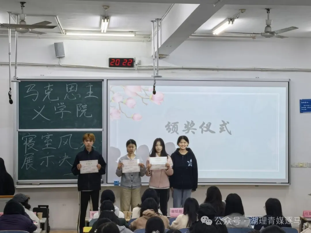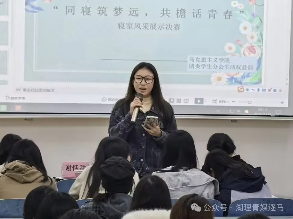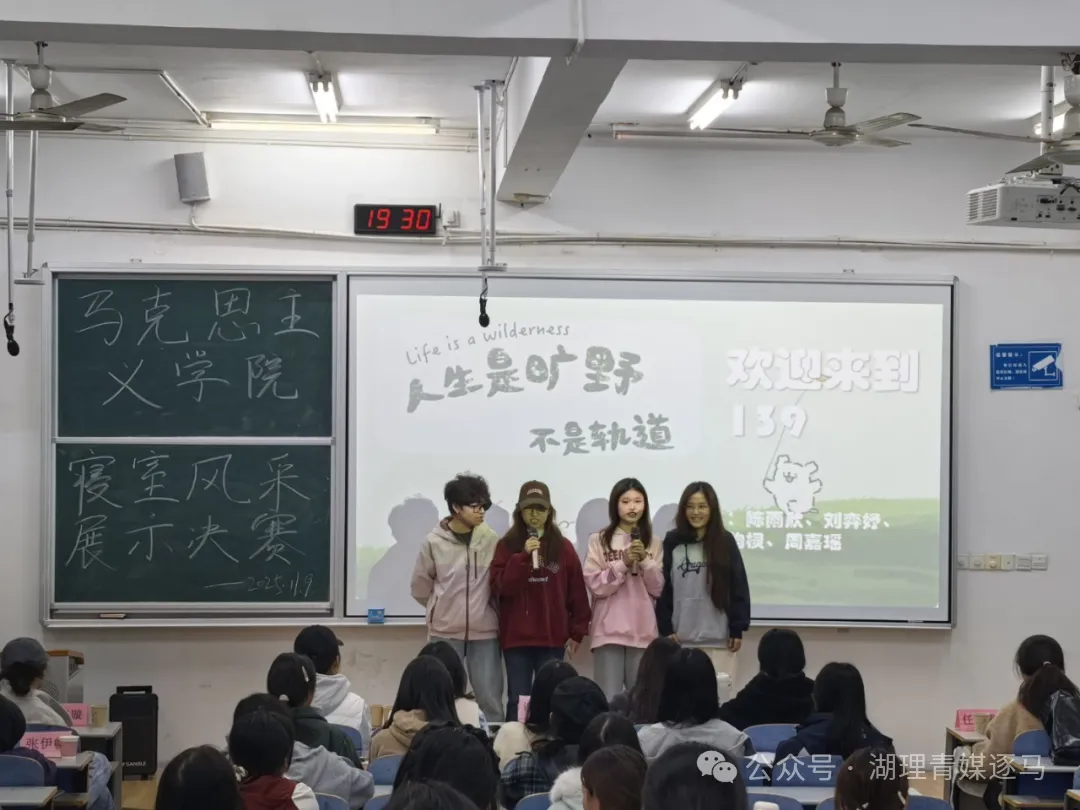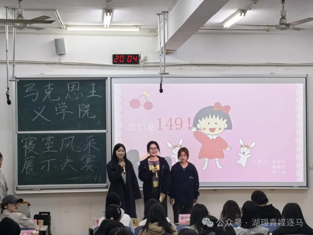 比赛伊始,主持人介绍了本次比赛的详细规则及具体流程,各参赛寝室按赛前抽签顺序依次进行展示。部分寝室巧妙将“蜡笔小新”、“樱桃小丸子”等动漫元素融入PPT,向评委和观众们展示独特寝室风采,诠释平凡生活里的纯真美好,引发全场强烈共鸣。